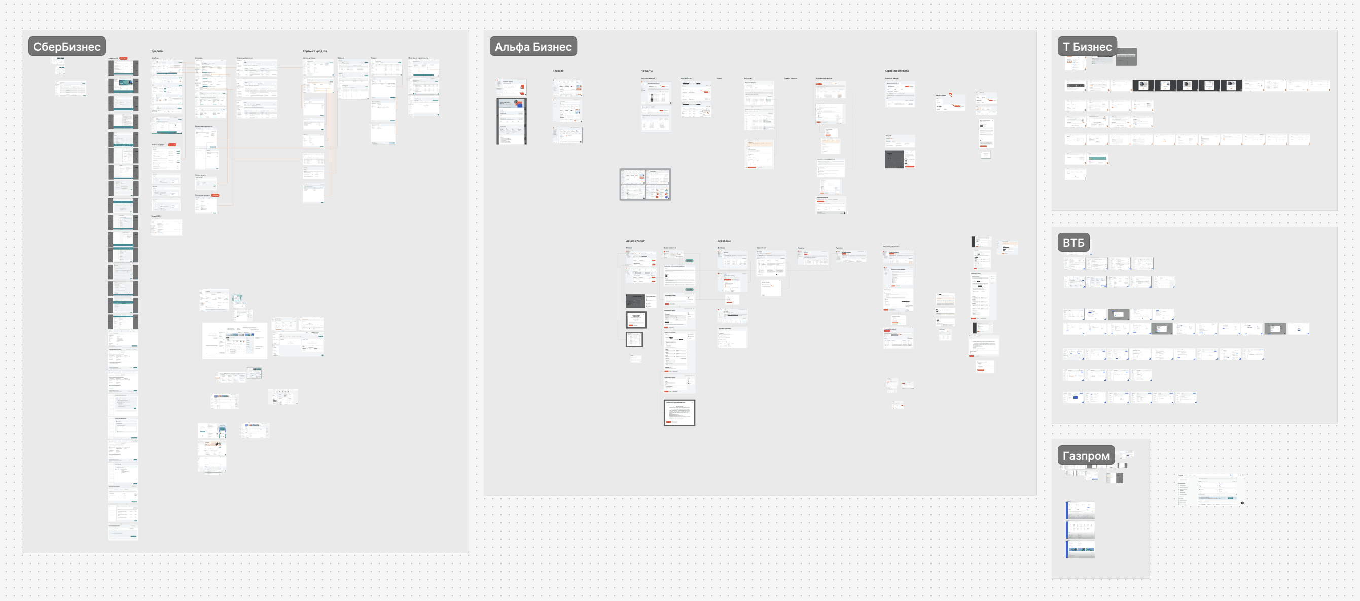 Изучила интерфейсные паттерны Альфы, Сбера и Т-Банка в карточках кредитов для юридических лиц